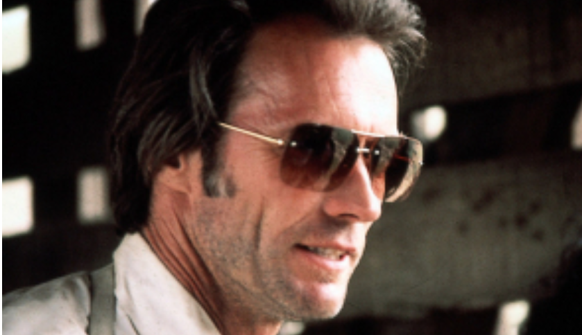 Clint Eastwood nel terzo episodio della serie di Callaghan iniziata da Don Siegel, “Cielo di piombo – Ispettore Callaghan”, indossa un modello di occhiali in stile Aviator dal design vintage.